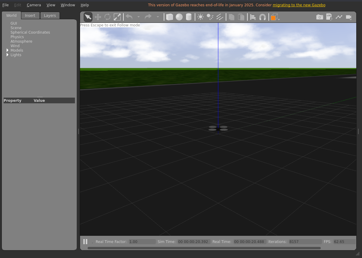 Gazebo Classic should now be running! Gazebo should open and you should see the STL of the multirotor at the origin.