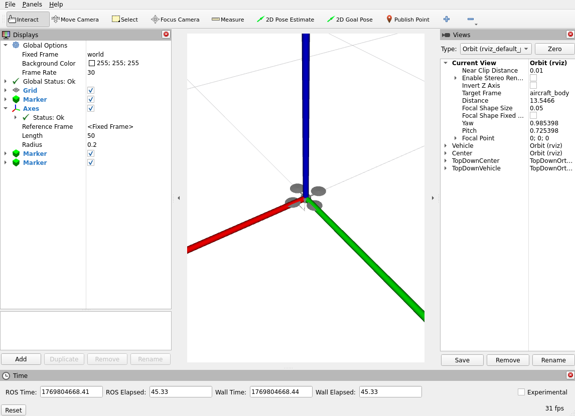 The standalone sim should now be running! RViz should open with the STL of the multirotor.