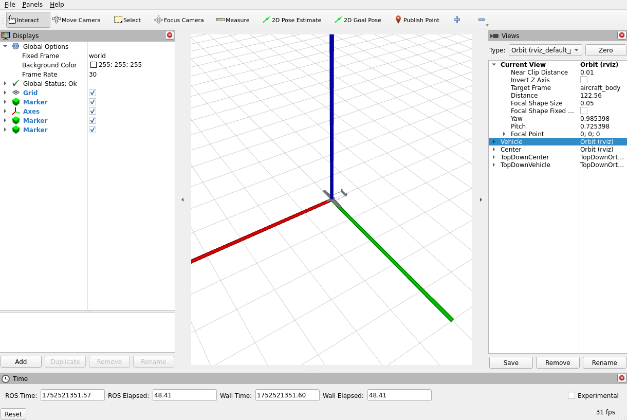 - RViz: Provides 3D visualization of the aircraft and flight path