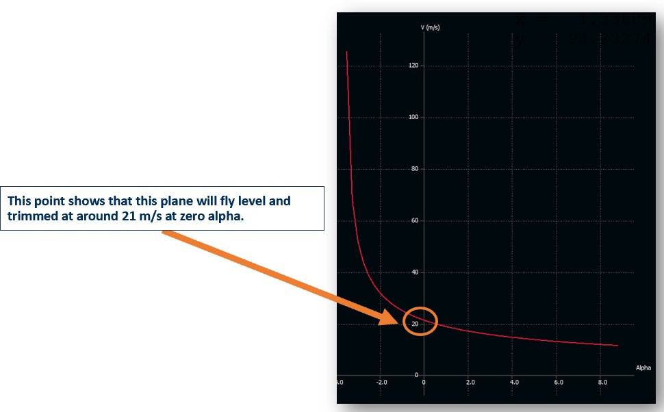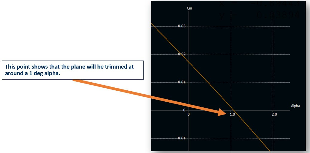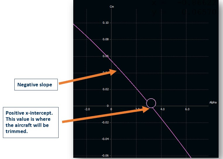 A Cm vs. alpha chart x-intercept shows the trimmed angle of an aircraft.