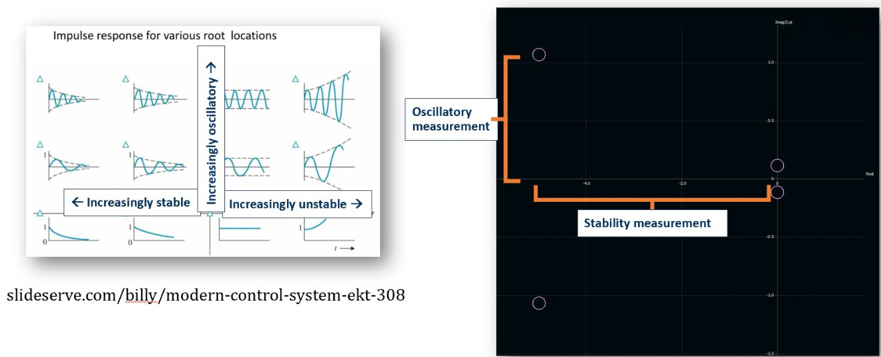 If the roots are farther left, the aircraft is more stable. Farther from the x-axis = more oscillation.