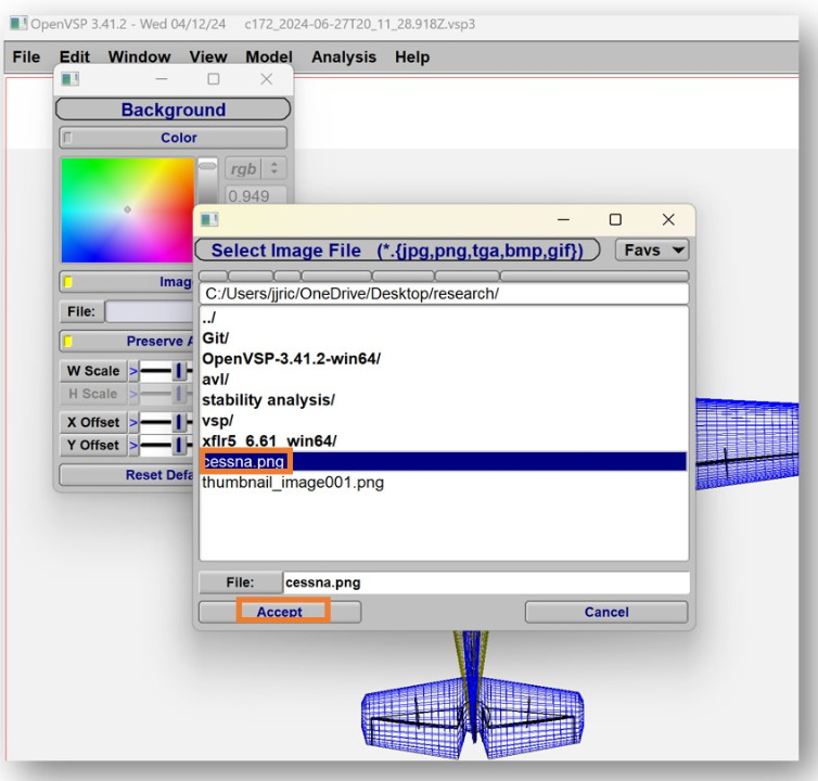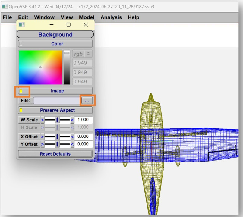 When modeling an aircraft, OpenVSP allows you to add a reference background image to help with modeling your aircraft correctly.
