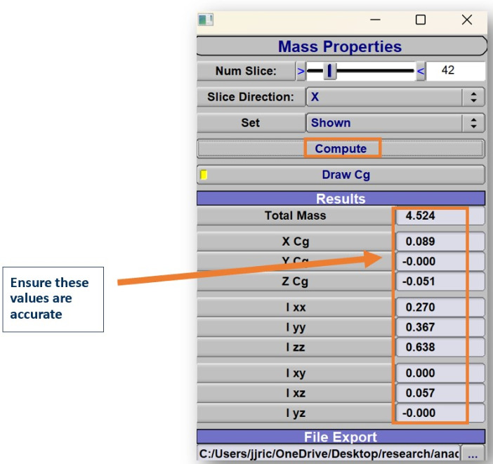 Click the "Compute" button and the mass and inertia values should appear in the boxes below.