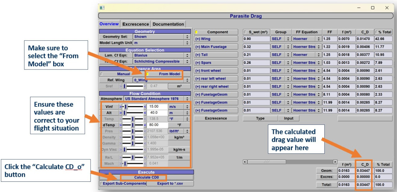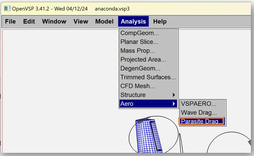 Parasitic drag can be analyzed using the drag analysis tool in the Analysis tab. This tool allows you to estimate the drag produced by the aircraft's components.