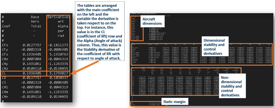 The .stab file contains all of the main aircraft dimensions and the dimensional and non-dimensional stability derivatives of the aircraft.