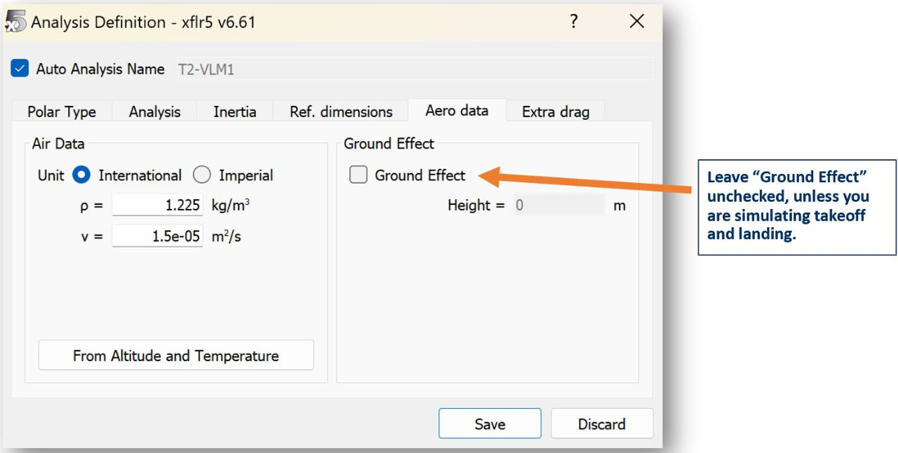Leave "Ground Effect" unchecked, unless you are simulating takeoff and landing.