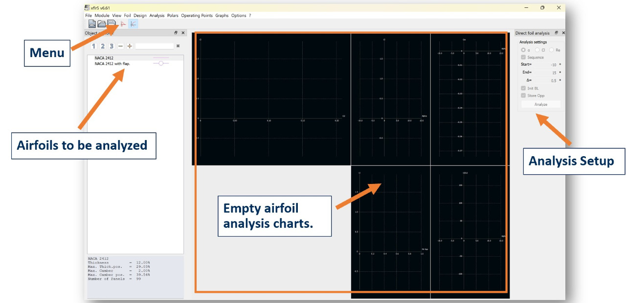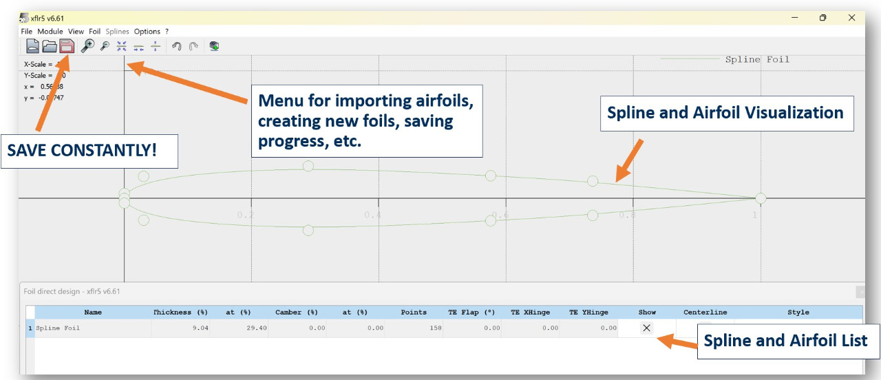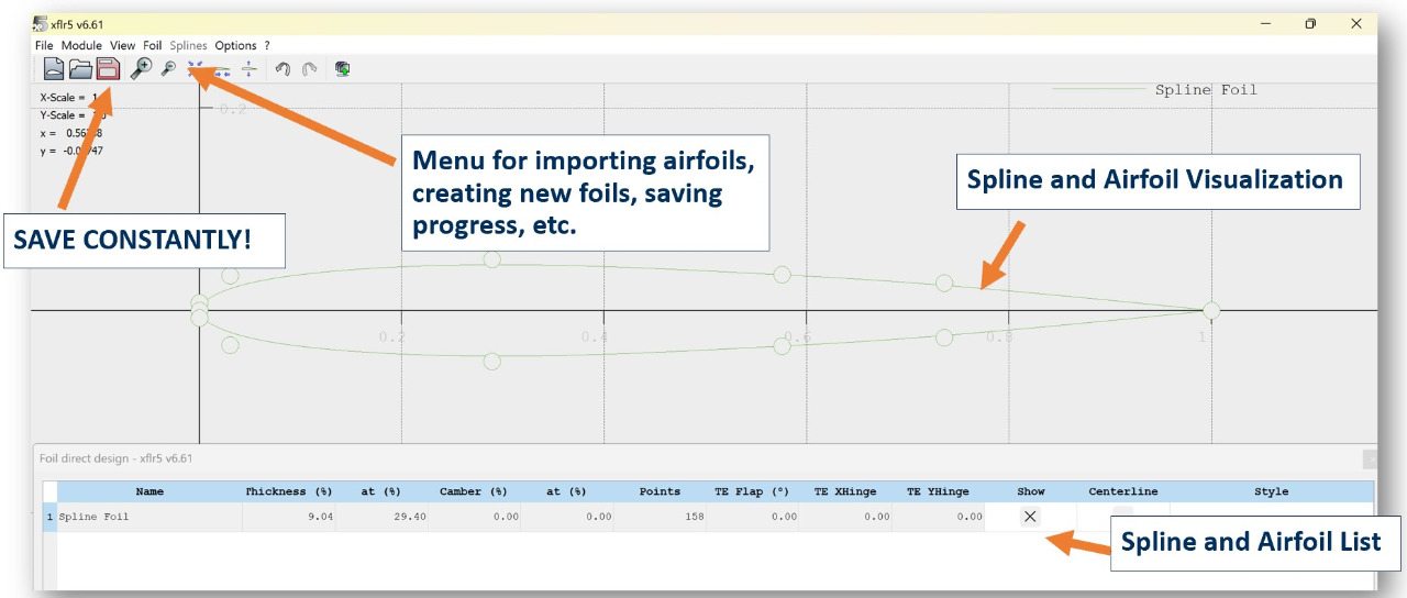 Direct Foil Design is where you will create, import, edit, and save each airfoil for your aircraft.