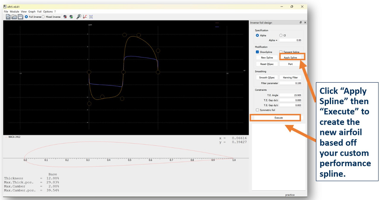 Move the spline to create the curve you want your airfoil to reflect.