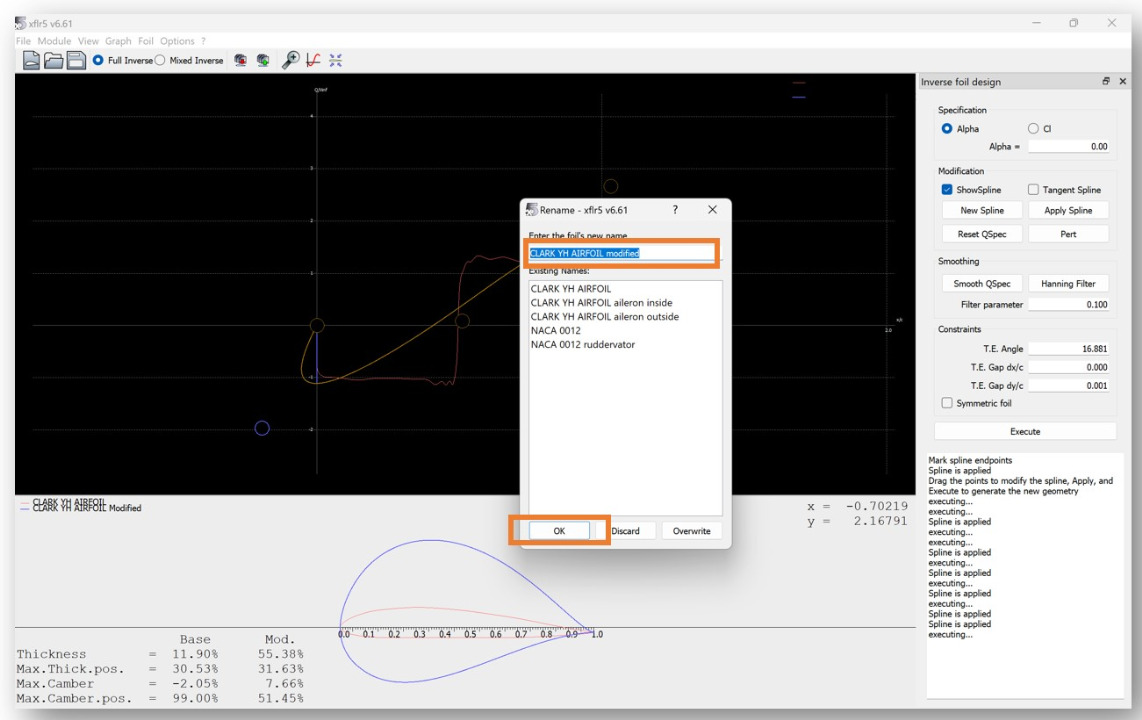 Name your airfoil, then click the "OK" button to save your new airfoil.
