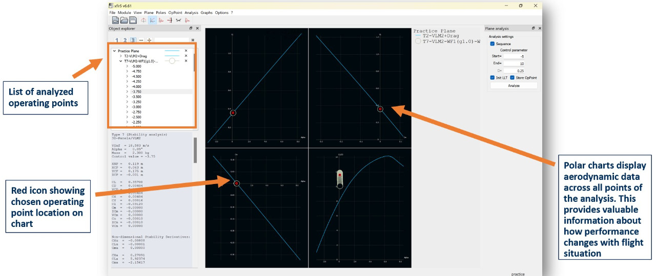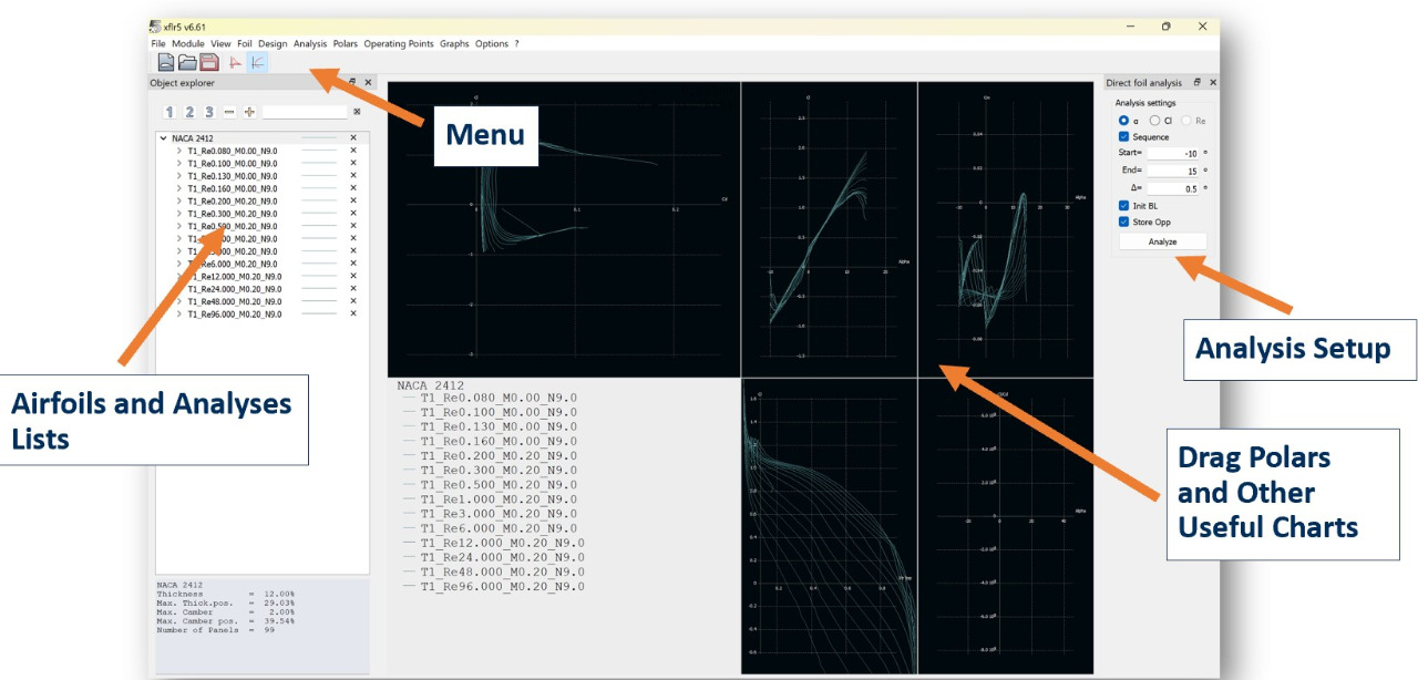 This tool basically analyzes how the airfoils will behave at a variety of airspeeds and angles of attack.