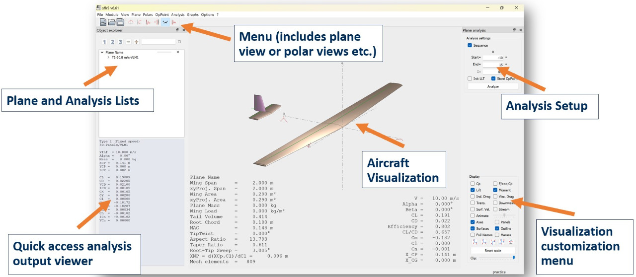 The following quick-links will walk you through basic navigation of the software, step-by-step aircraft modeling and analysis instructions, an overview of all of the visualization tools available, a list of common errors, and a list of useful resources for users wishing to go more in depth.
