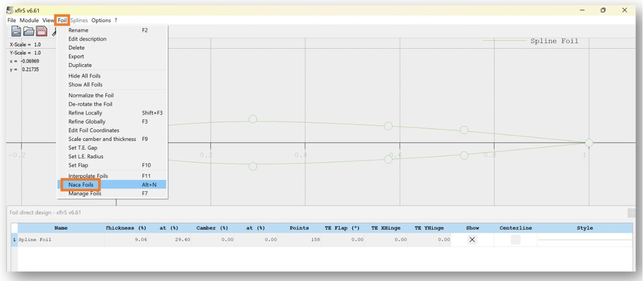 To import a NACA foil: > Foil > Naca Foils