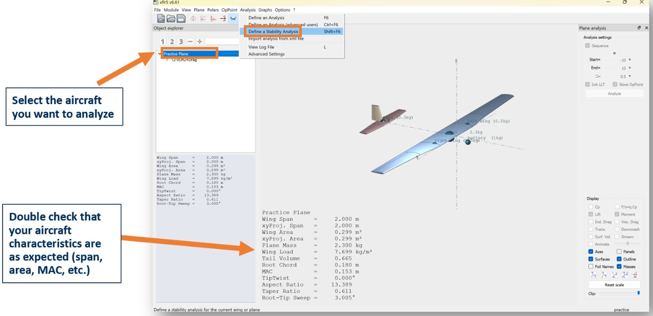 To setup your stability analysis, select the aircraft you want to analyze.