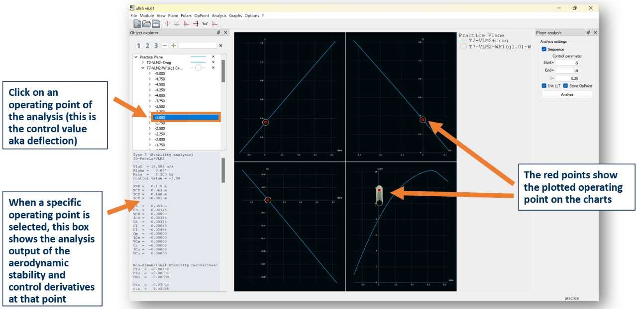 A stability analysis will allow you to evaluate the stability and control derivatives as well the time response of the aircraft to disturbances.