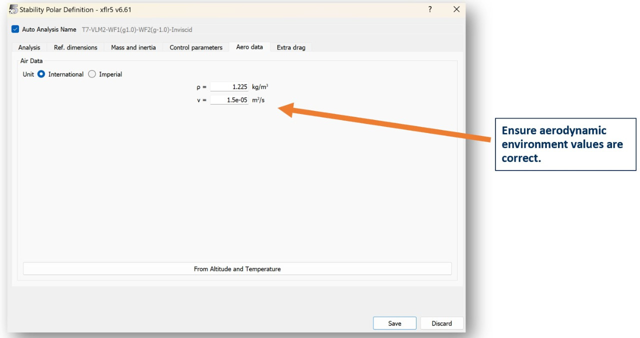 In the Aero data tab, ensure the density and viscosity measurements are accurate to your expected flight environment.