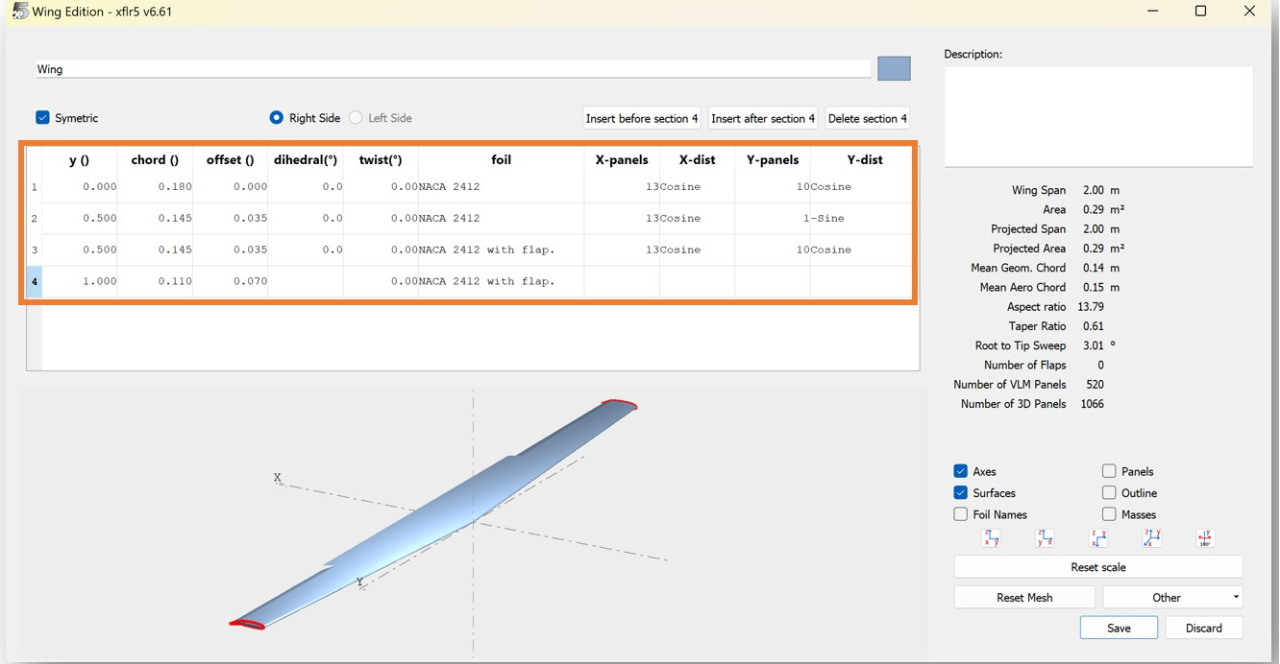 Once your airfoil is added to your project, you can edit the airfoil and add control surfaces.
