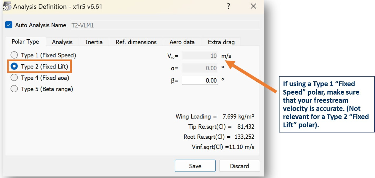 Once the Analysis Definition box opens, in the Polar Type tab choose your desired polar type. (Fixed lift is recommended because it automatically trims the aircraft)